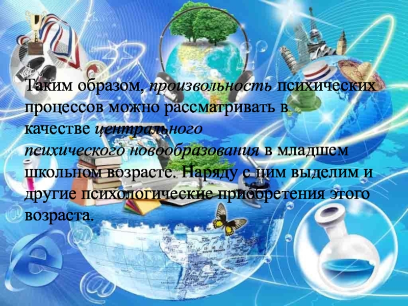 Слайд 10Таким образом, произвольность психических процессов можно рассматривать в качестве центрального психического новообразования в младшем школьном возрасте.