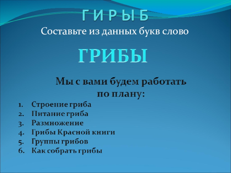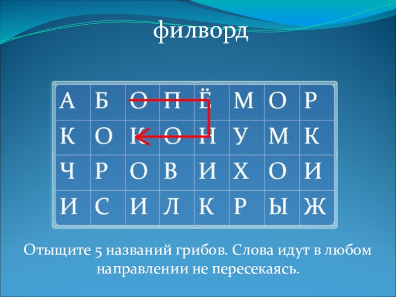 Отыщите 5 названий грибов. Слова идут в любом направлении