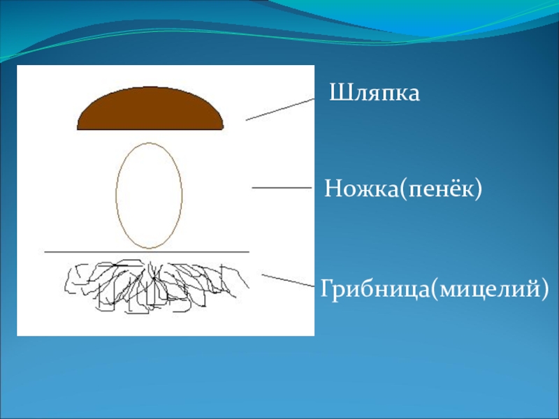 ШляпкаНожка(пенёк)Грибница(мицелий)