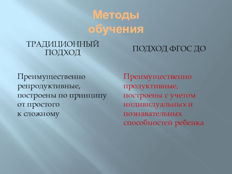 Преимущественно продуктивные, построены с учетом индивидуальных и познавательных способностей ребенка