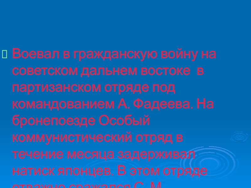 Слайд 11Воевал в гражданскую войну на советском дальнем востоке в партизанском отряде