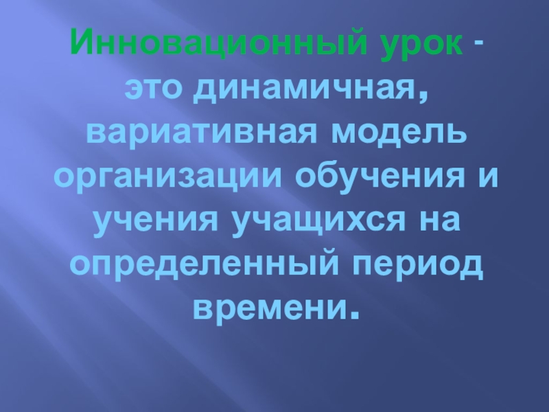 Инновационный урок - это динамичная, вариативная модель организации обучения и учения учащихся на определенный период времени.