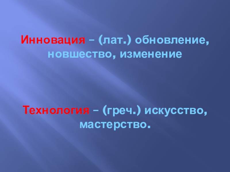 Инновация – (лат.) обновление, новшество, изменение Технология – (греч.) искусство, мастерство.