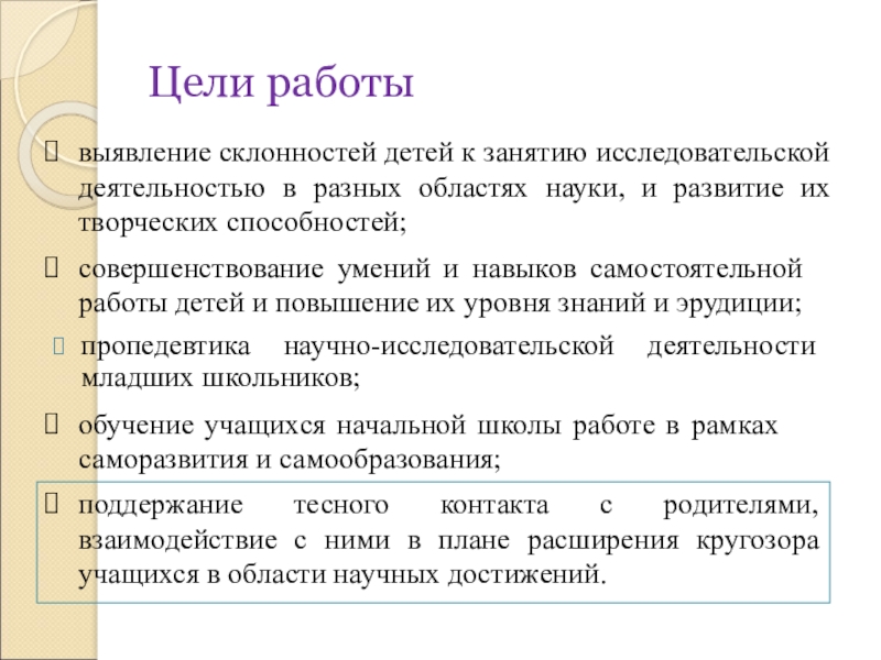 поддержание тесного контакта с родителями, взаимодействие с ними в плане расширения кругозора учащихся в области научных достижений.