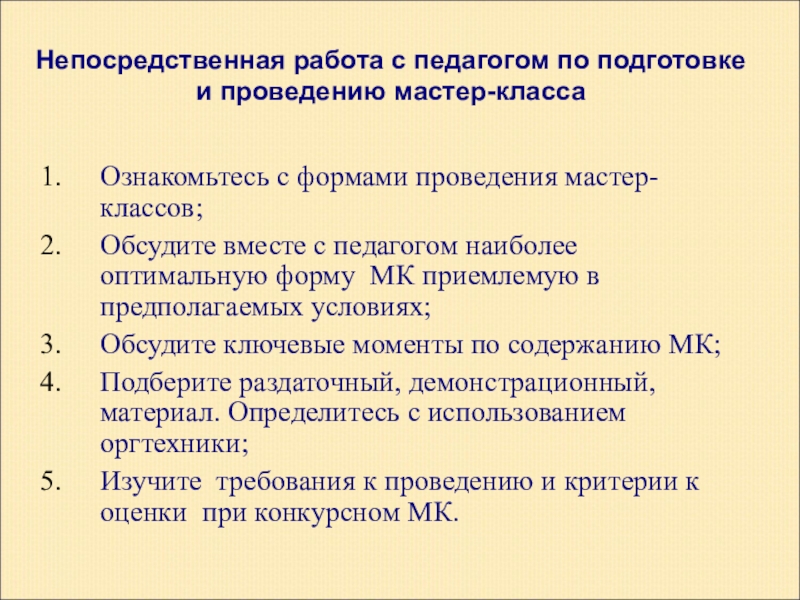 Непосредственная работа с педагогом по подготовке и проведению мастер-класса