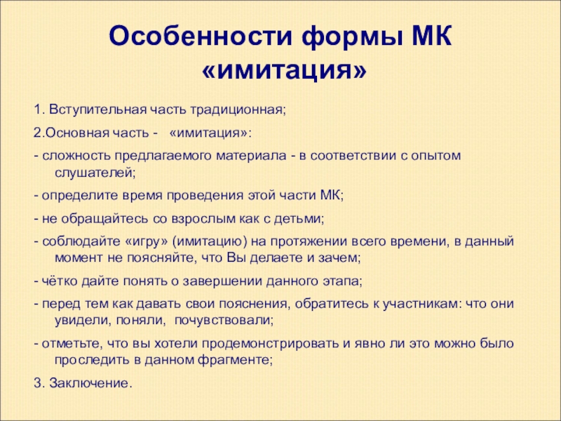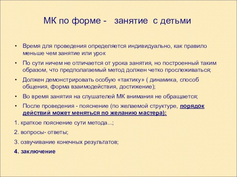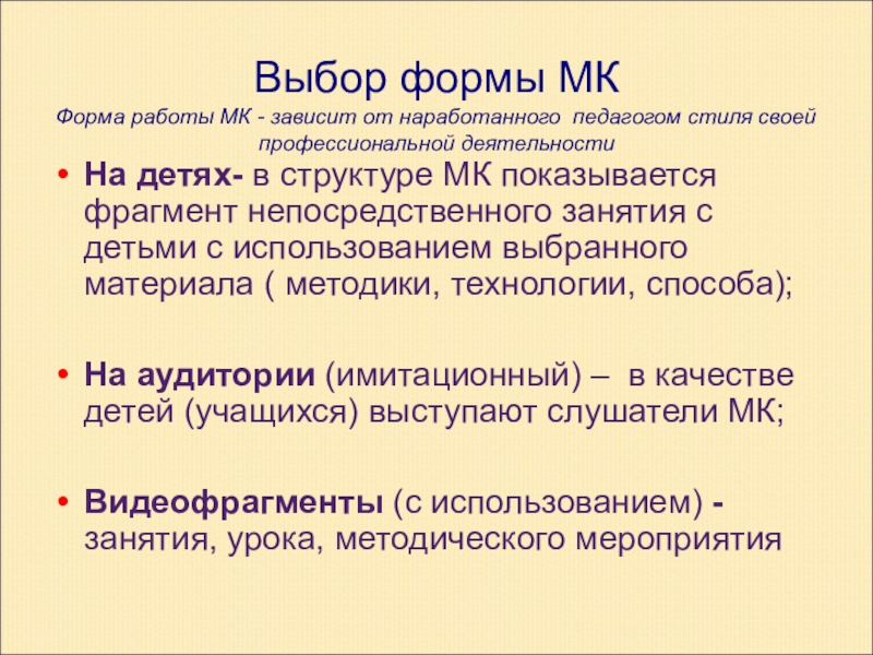 Обсудите вместе с педагогом наиболее оптимальную форму МК приемлемую в предполагаемых условиях;