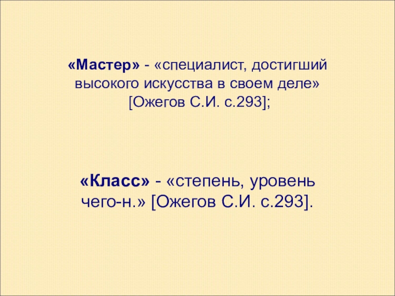 «Мастер» - «специалист, достигший высокого искусства в своем деле»