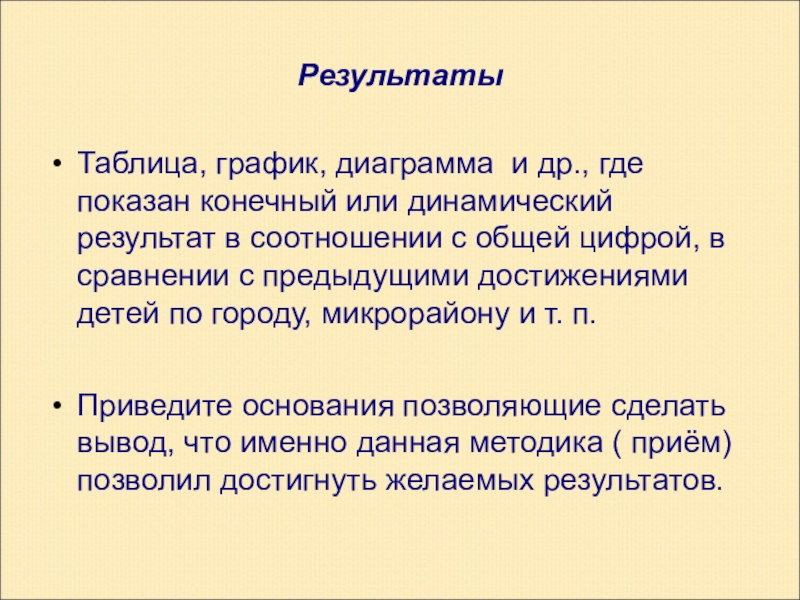 - в какой форме Вы будете демонстрировать результаты (они должны быть выше общепринятых);