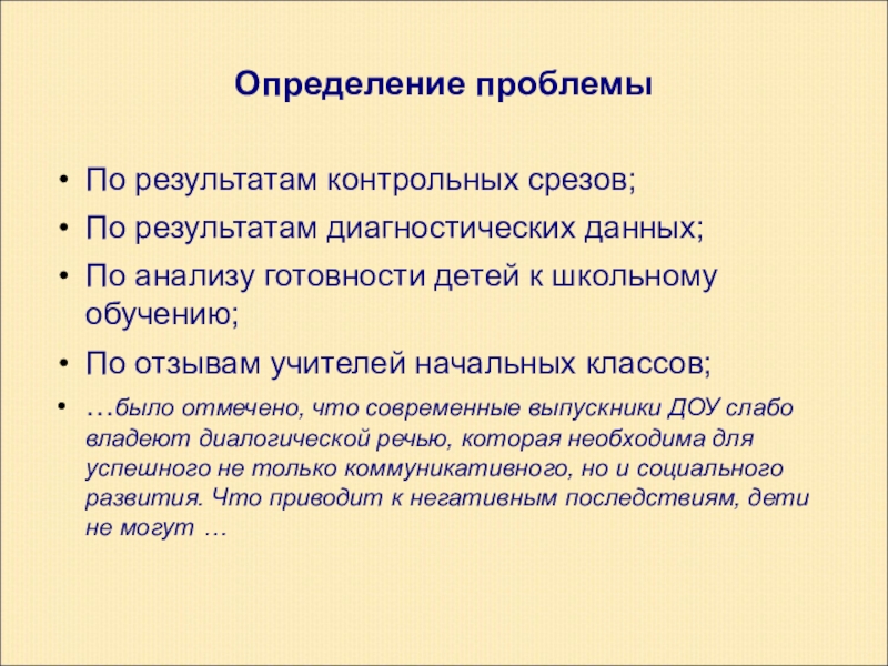 …было отмечено, что современные выпускники ДОУ слабо владеют диалогической речью, которая необходима для успешного не только коммуникативного, но и социального развития. Что приводит к негативным последствиям, дети не могут …