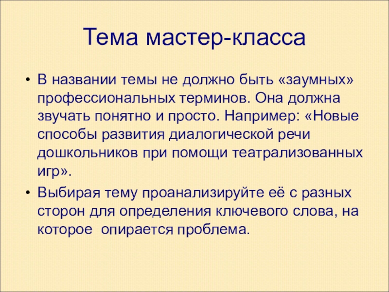 В названии темы не должно быть «заумных» профессиональных терминов. Она