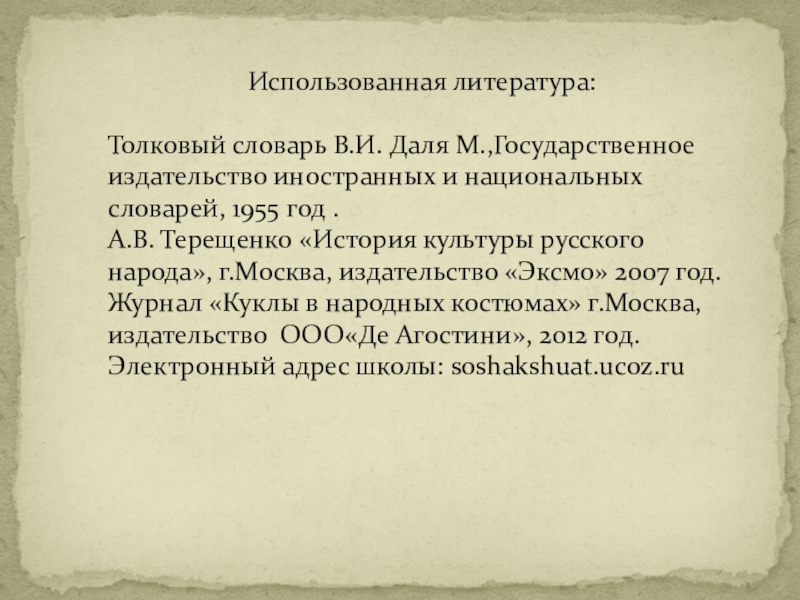 Журнал «Куклы в народных костюмах» г.Москва, издательство ООО«Де Агостини», 2012 год.