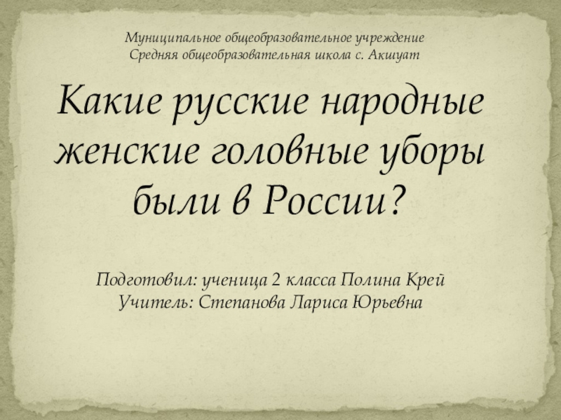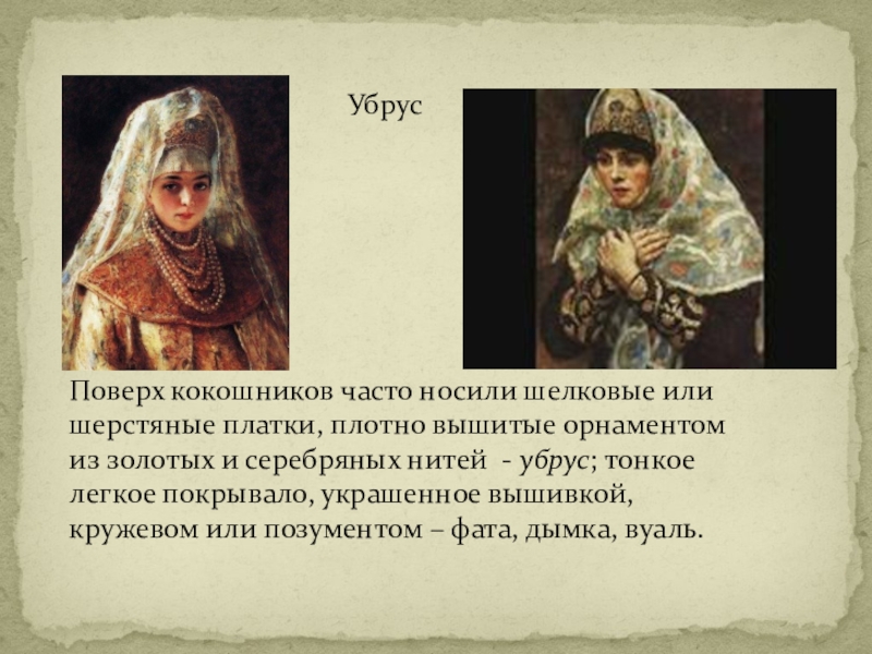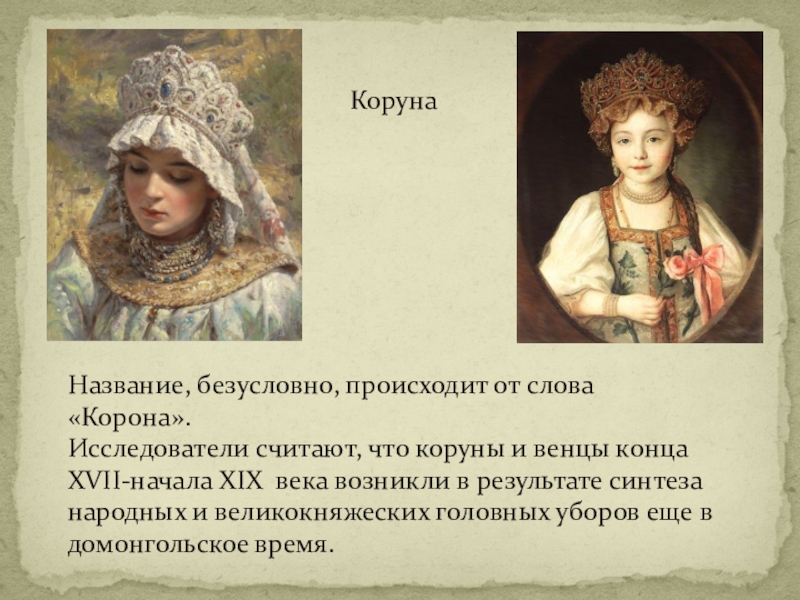 конца XVII-начала XIX века возникли в результате синтеза народных и великокняжеских головных уборов еще в домонгольское время.