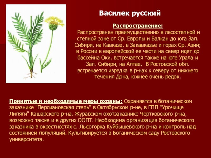 Принятые и необходимые меры охраны: Охраняется в ботаническом заказнике "Персиановская степь" в Октябрьском р-не, в ГПП "Урочище Липяги" Кашарского р-на, Журавском охотзаказнике Чертковского р-на, возможно также и в других ООПТ. Необходима организация ботанического заказника в окрестностях с. Лысогорка Куйбышевского р-на и контроль над состоянием популяций. Культивируется в Ботаническом саду Ростовского университета.