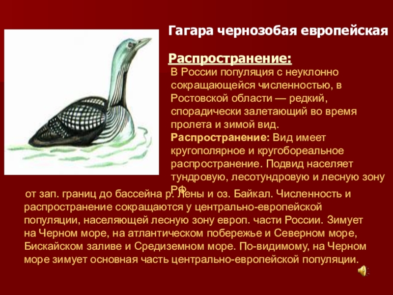 от зап. границ до бассейна р. Лены и оз. Байкал. Численность и распространение сокращаются у центрально-европейской популяции, населяющей лесную зону европ. части России. Зимует на Черном море, на атлантическом побережье и Северном море, Бискайском заливе и Средиземном море. По-видимому, на Черном море зимует основная часть центрально-европейской популяции.
