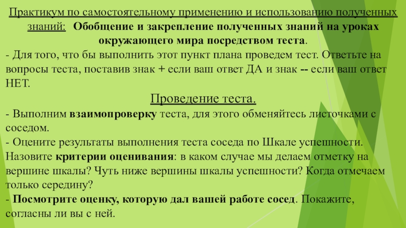 знаний на уроках окружающего мира посредством теста.