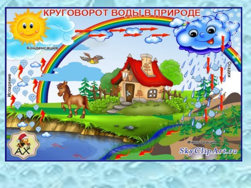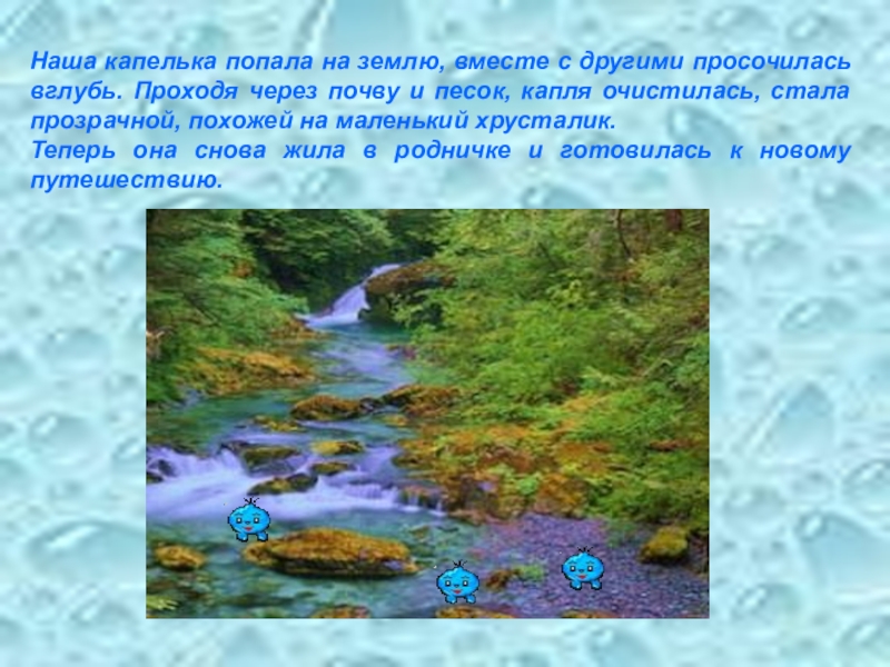 Слайд 9Наша капелька попала на землю, вместе с другими просочилась вглубь. Проходя