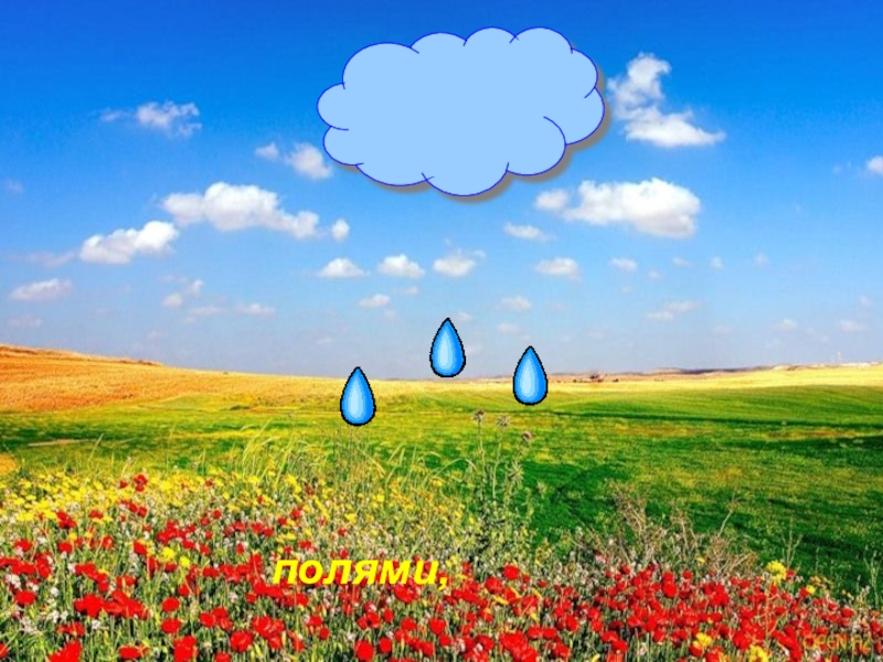 Слайд 4Капельки играли, переливались на солнце. Всем было