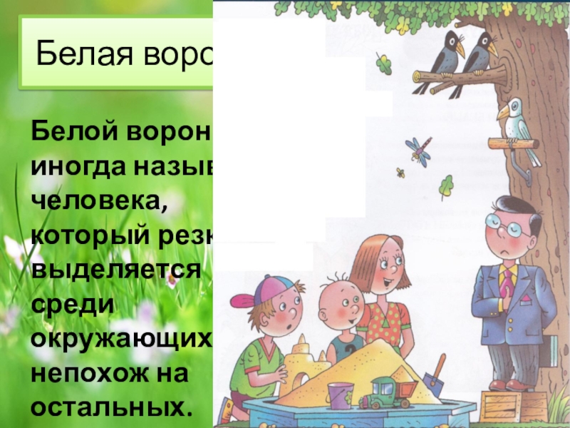 Белой вороной иногда называют человека, который резко выделяется среди окружающих,