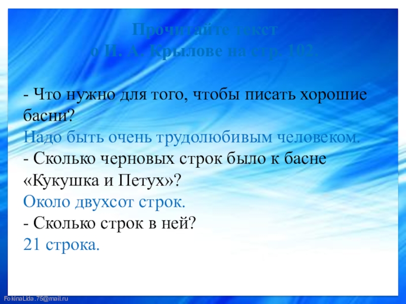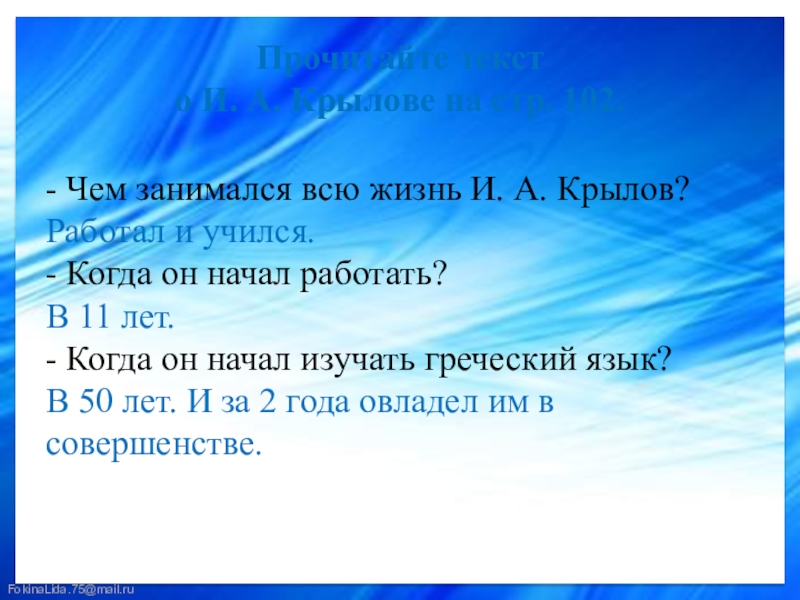 Слайд 9- Чем занимался всю жизнь И. А. Крылов?