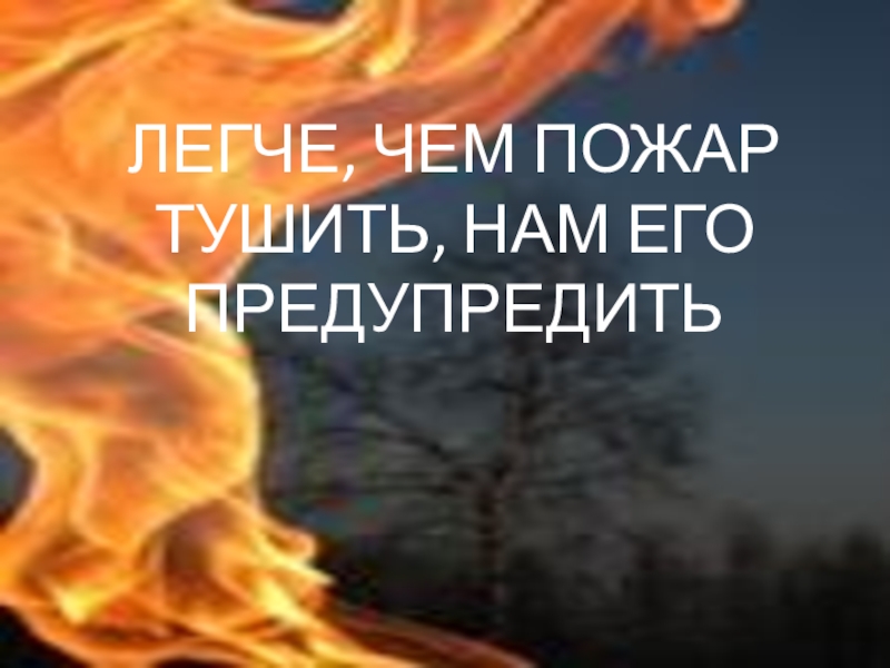 Слайд 2ЛЕГЧЕ, ЧЕМ ПОЖАР ТУШИТЬ, НАМ ЕГО ПРЕДУПРЕДИТЬ