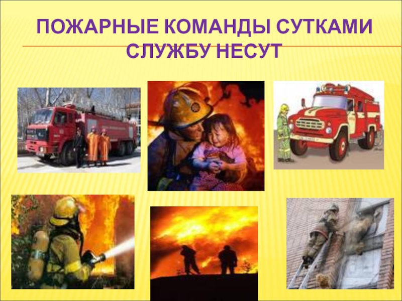 Слайд 16ПОЖАРНЫЕ КОМАНДЫ СУТКАМИ СЛУЖБУ НЕСУТ