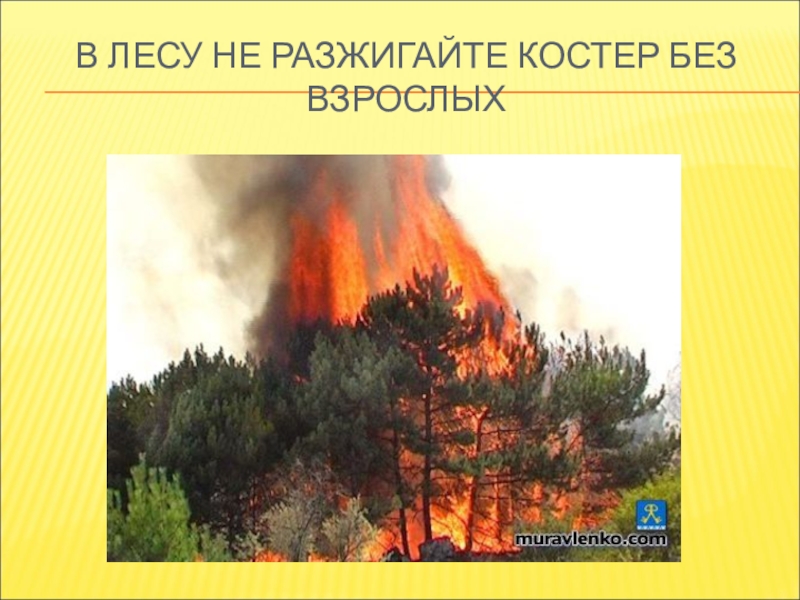 Слайд 15В ЛЕСУ НЕ РАЗЖИГАЙТЕ КОСТЕР БЕЗ ВЗРОСЛЫХ