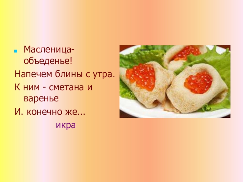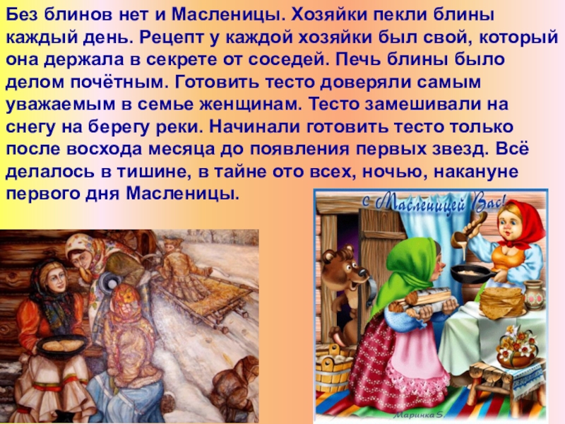 Слайд 5Без блинов нет и Масленицы. Хозяйки пекли блины каждый день. Рецепт