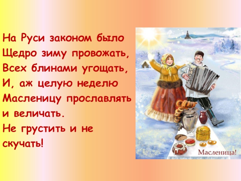 Слайд 6Всегда считалось, что человек, который плохо и скучно провёл масленичную неделю, будет неудачлив