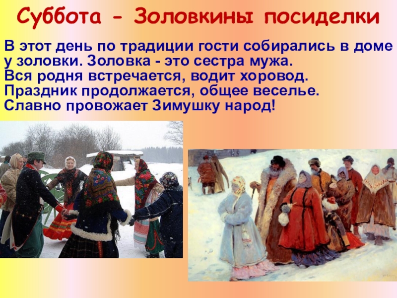 он целую неделю: ярмарки, уличные игры, выступления ряженых, пляски, песни.