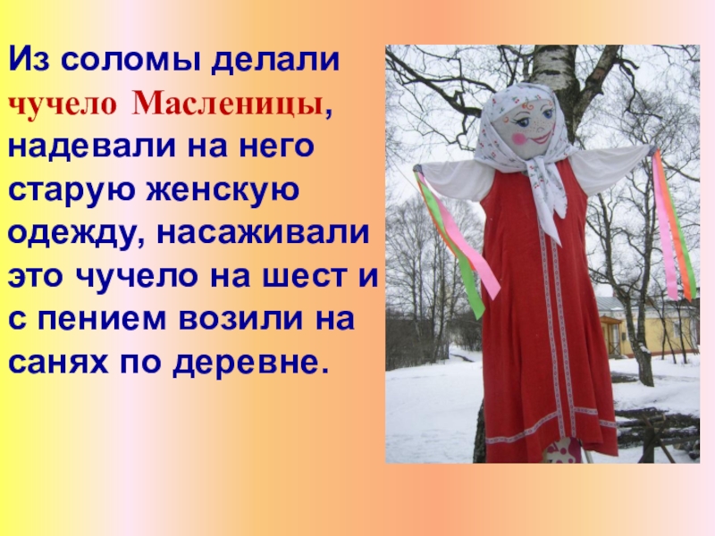 насаживали это чучело на шест и с пением возили на санях по деревне.