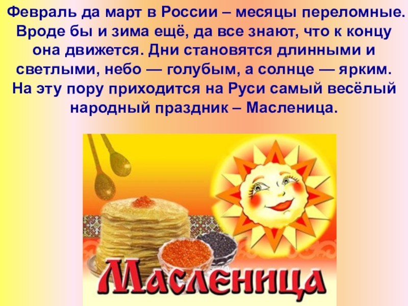 Слайд 2Февраль да март в России – месяцы переломные. Вроде бы и
