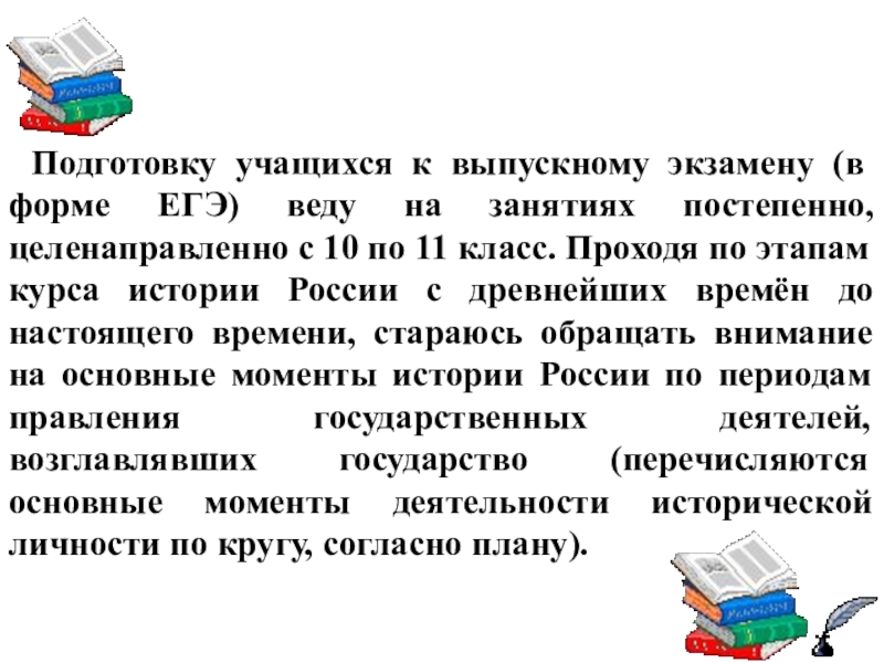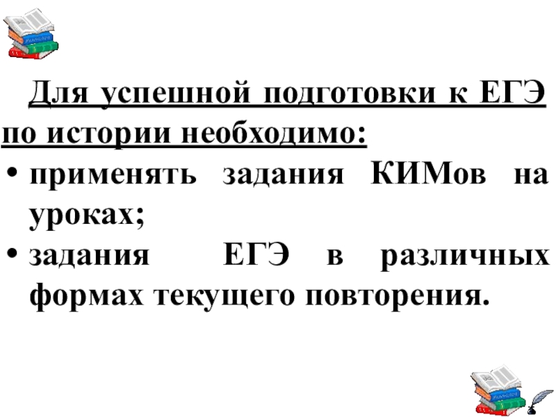 Слайд 5При подготовке к ЕГЭ по истории требуется особая система занятий с