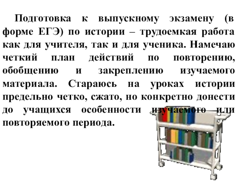 Слайд 3Подготовка к выпускному экзамену (в форме ЕГЭ) по истории – трудоемкая