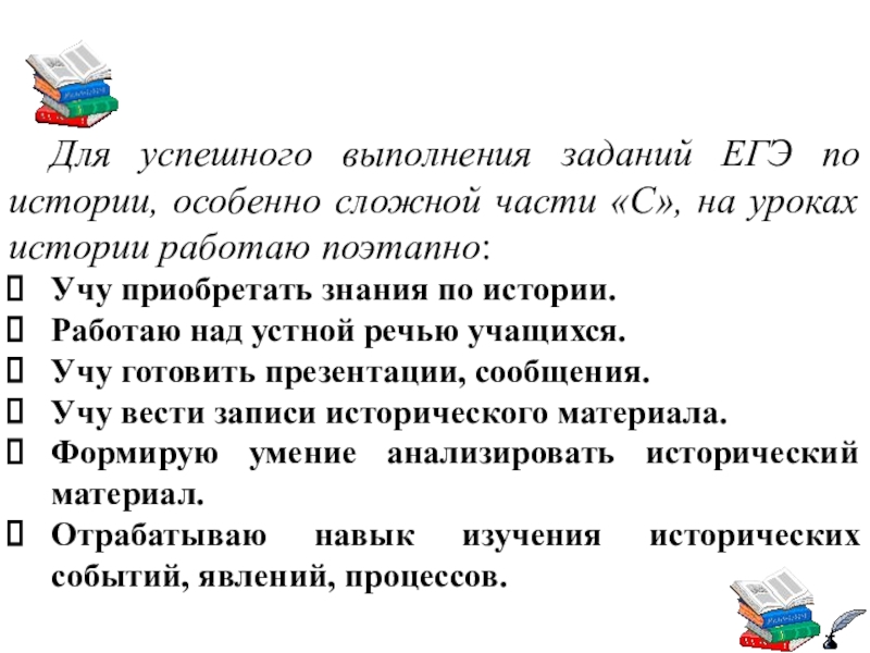 Слайд 11Для успешного выполнения заданий ЕГЭ по истории, особенно сложной части «С»,