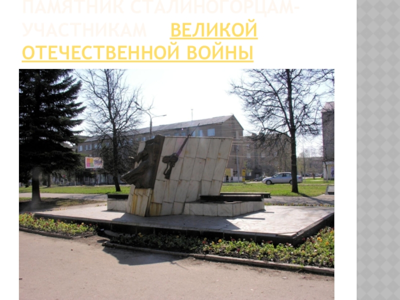 Слайд 18Памятник сталиногорцам- участникам Великой Отечественной войны