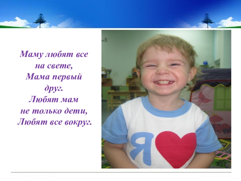 Маму любят все на свете, Мама первый друг.Любят мам не только дети,Любят все вокруг.