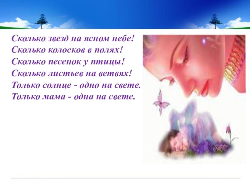 листьев на ветвях! Только солнце - одно на свете. Только мама - одна на свете.