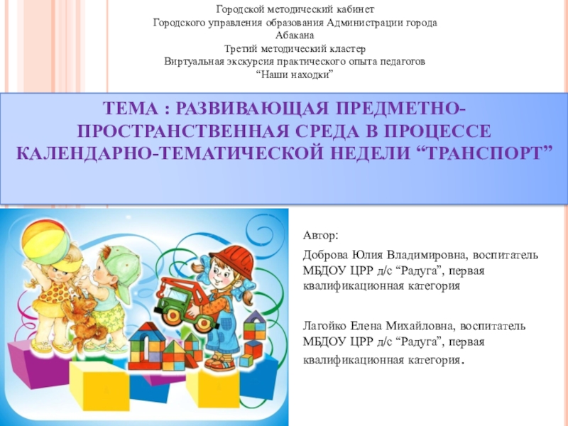 ТЕМА : РАЗВИВАЮЩАЯ ПРЕДМЕТНО-ПРОСТРАНСТВЕННАЯ СРЕДА В ПРОЦЕССЕ КАЛЕНДАРНО-ТЕМАТИЧЕСКОЙ НЕДЕЛИ “ТРАНСПОРТ”