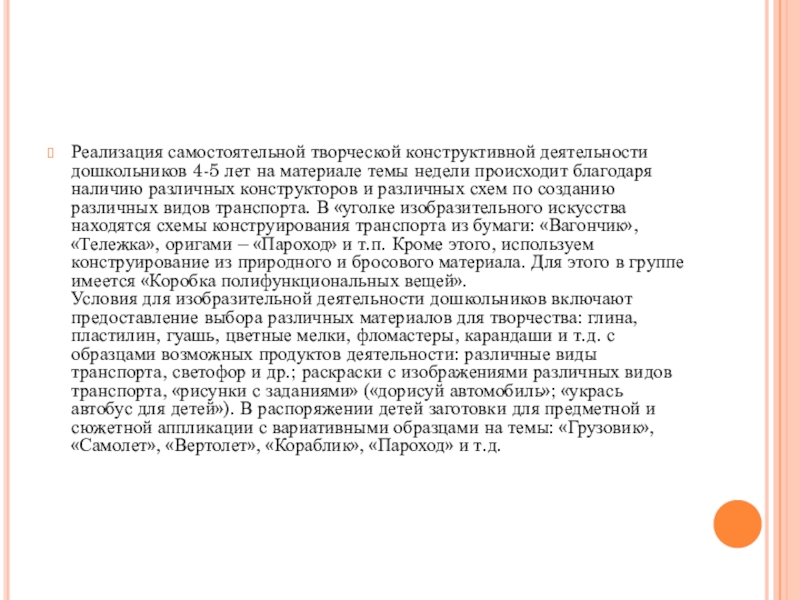 Реализация самостоятельной творческой конструктивной деятельности дошкольников 4-5 лет на материале темы