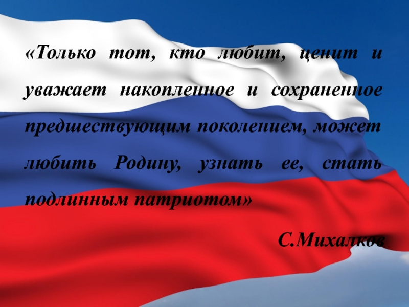 Слайд 22«Только тот, кто любит, ценит и уважает накопленное и сохраненное предшествующим
