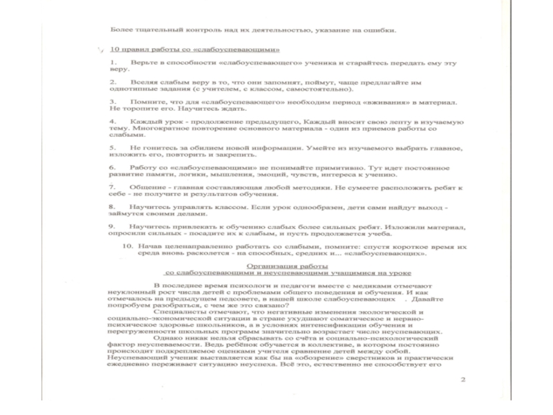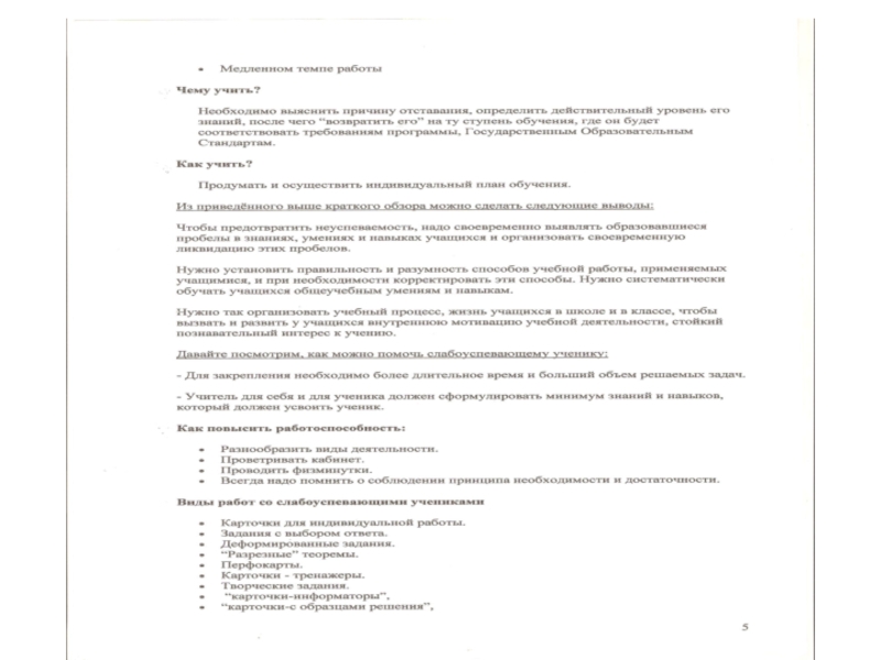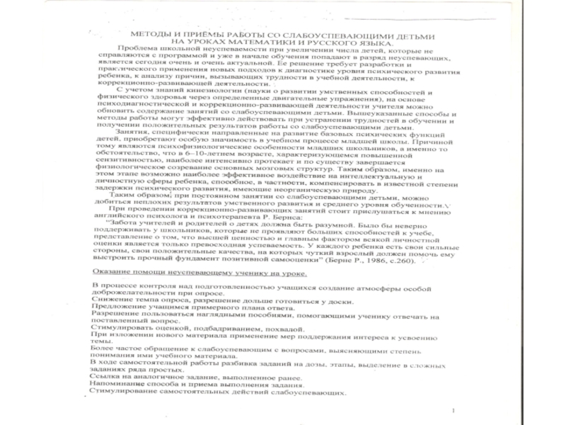 Презентация, доклад по теме Обобщение педагогического опыта Методы и приёмы работы со слабоуспевающими детьми на уроках математики и русского языка