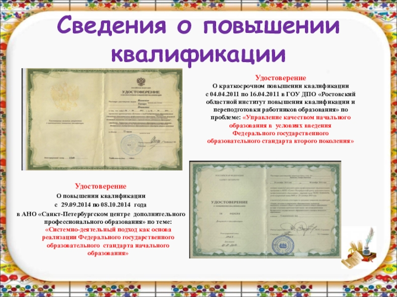 в АНО «Санкт-Петербургском центре дополнительного профессионального образования» по теме: «Системно-деятельный подход как основа реализации Федерального государственного образовательного стандарта начального образования»