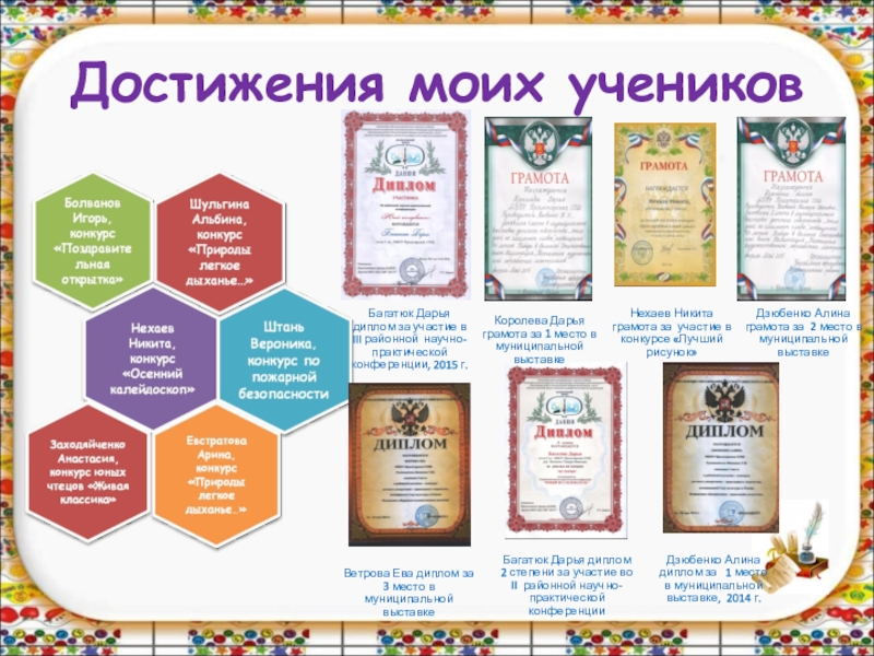 Дзюбенко Алина диплом за 1 место в муниципальной выставке, 2014 г.