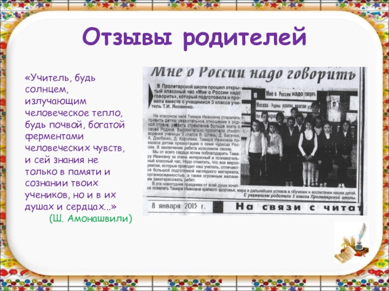 Это сайт презентаций, где можно хранить и обмениваться своими презентациями, докладами, проектами, шаблонами в формате PowerPoint с другими пользователями. Мы помогаем школьникам, студентам, учителям, преподавателям хранить и обмениваться учебными материалами.