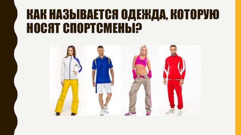 Слайд 17как называется одежда, которую носят спортсмены?