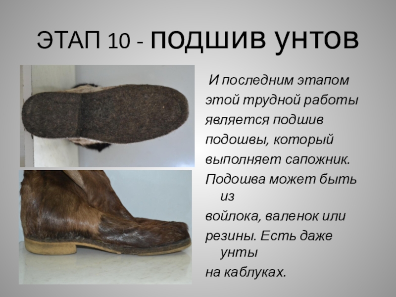 Слайд 12ЭТАП 10 - подшив унтов