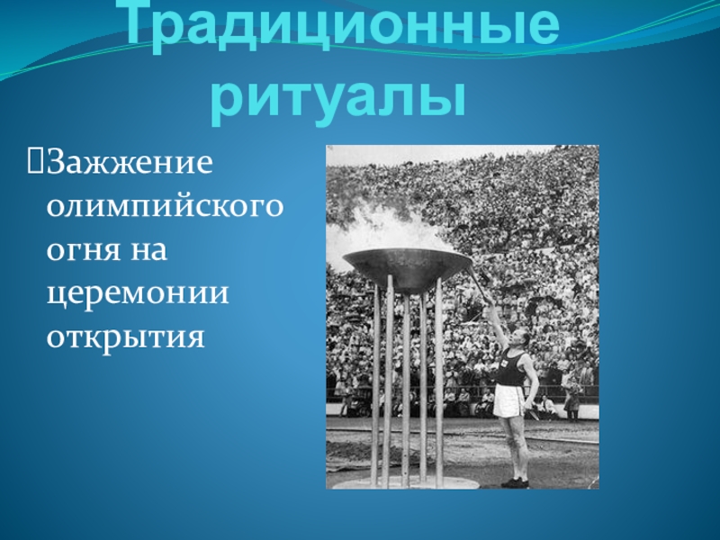 Традиционные ритуалыЗажжение олимпийского огня на церемонии открытия