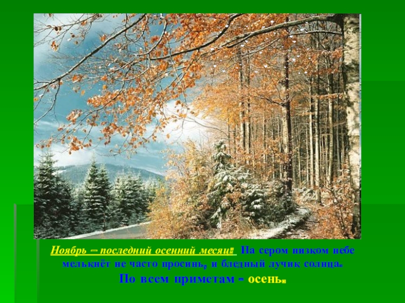 Слайд 22Ноябрь – последний осенний месяц: На сером низком небе мелькнёт не