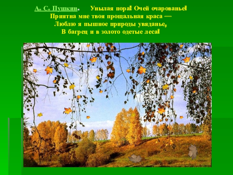 А. С. Пушкин.   Унылая пора! Очей очарованье! Приятна мне твоя прощальная краса — Люблю я