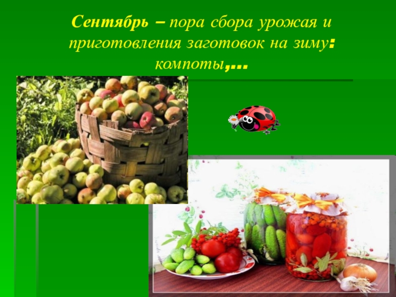 Слайд 12Сентябрь – пора сбора урожая и приготовления заготовок на зиму: